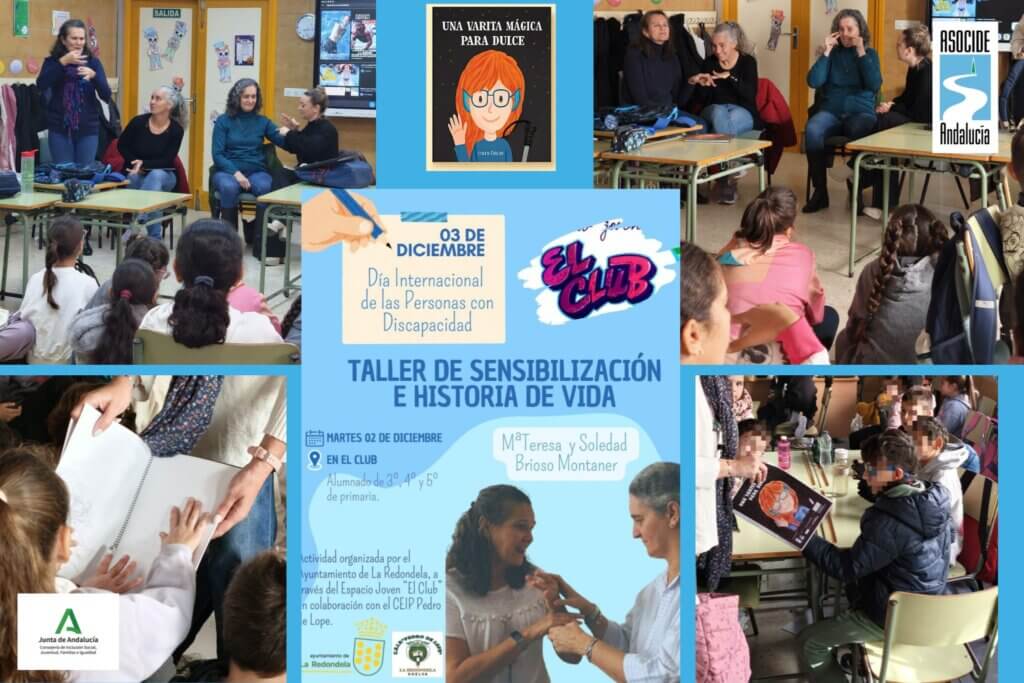 El martes, las hermanas Marisol y María Teresa Brioso realizaron un un Taller de sensibilización e Historia de vida, en la Redondela, Huelva. Una actividad organizada por el Ayuntamiento de la Redondela, a través del Espacio Joven “El Club” y en colaboración con el CEIP “Pedro de Lope” y dirigida alumnado de 3º, 4º y 5º.